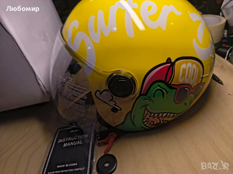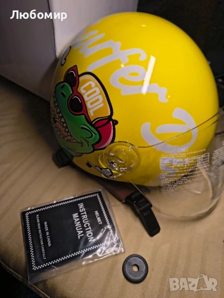 с лек транспортен дефект.на 3 снимка.Мотоциклетна каска в анимационен стил за младежи, лятна детска 3/4 каска с отворено лице, ретро полукаска, лека, за скутер, мотопед, мъже и жени, уличен круизър, реактивен стил, DOT сертифицирана каска.ABS ЧЕРУПКА: Черупката е изработена от лека ABS пластмаса, ултра лека, намалява основното натоварване на ездача и има добра устойчивост на удар.