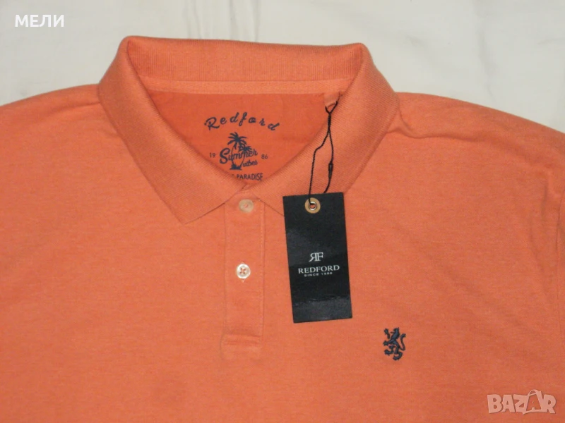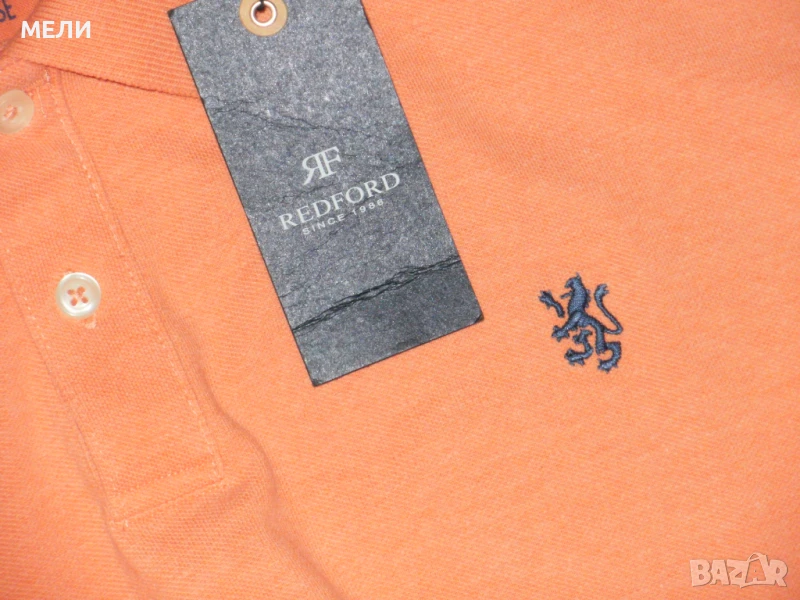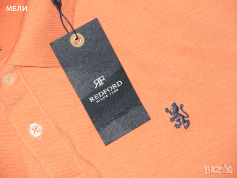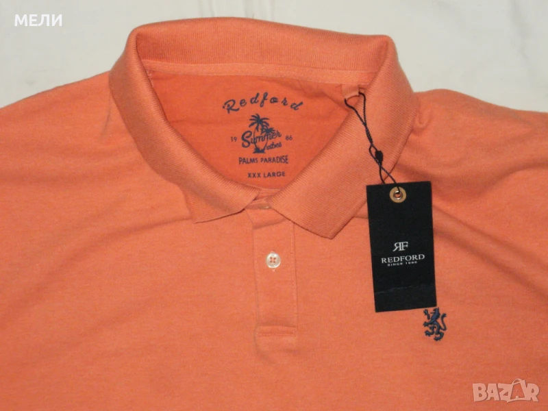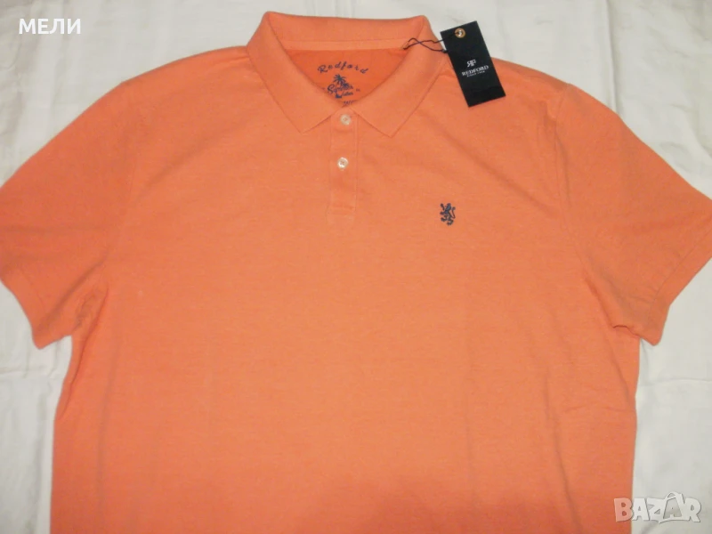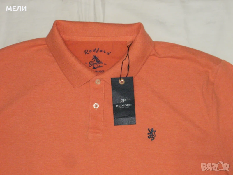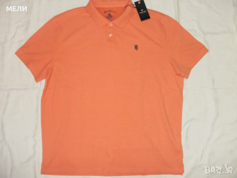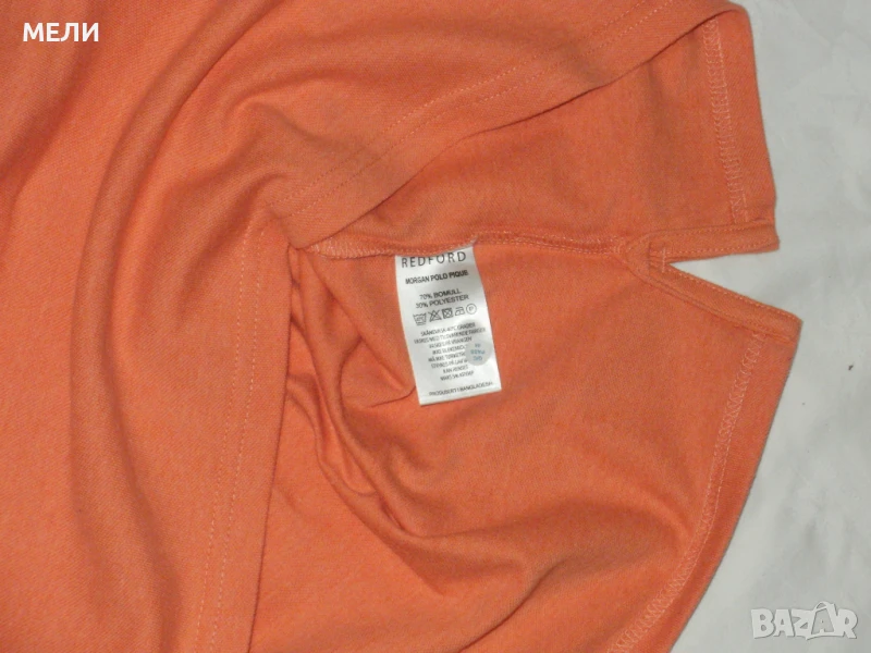 Тениската е на REDFORD, оригинална, нова с етикет По номер е 3XL, цвета е като на снимнките оранжево-коралов. Материята е трико от 70%-памук и 30%-полиестер. Отстрани има малки цепки.