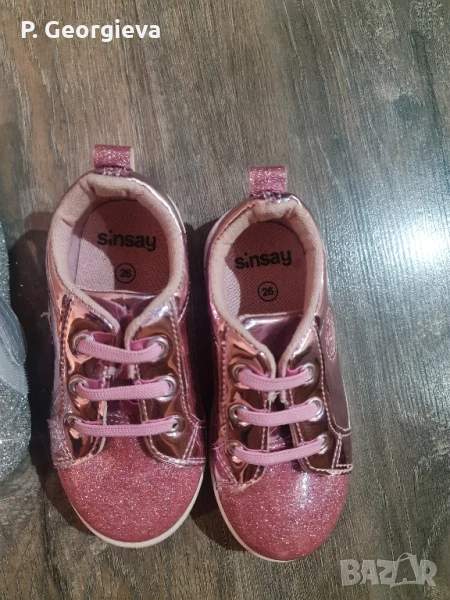 Много сладки обувки за малки принцеси. Сивите (27 номер)не са носени изобщо, защото са поръчани по нета като обувки на Елза и са ни малки, а розовите (26 номер) са обувани 4-5 пъти.