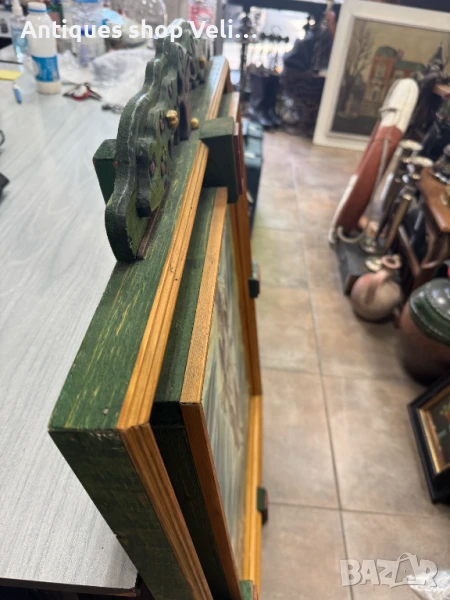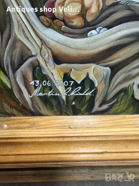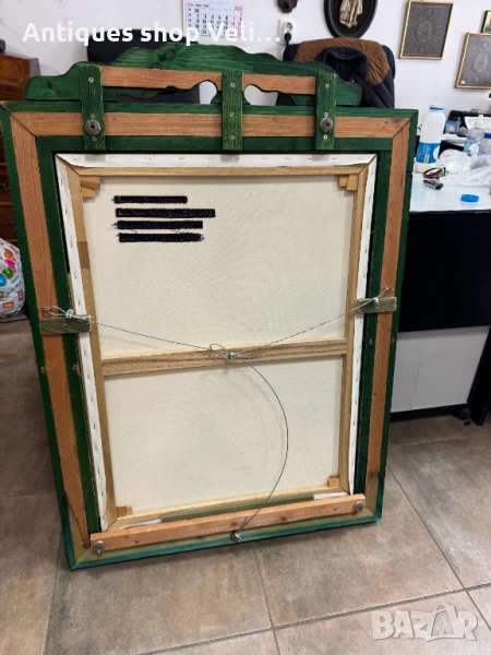 Красива авторска картина/икона с ръчно изработена рамка от масивно дърво. Добро състояние. Предлагаме доставка с Еконт и лично предаване за градовете Велико Търново, Русе и Сливен! Размери-107/76см.