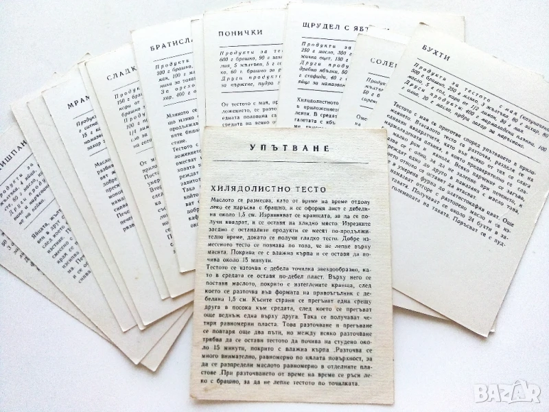 Тестени сладкиши - Рецепти в картички  18бр.- 1973г → Обява 50725395