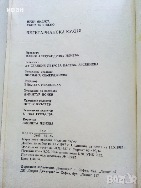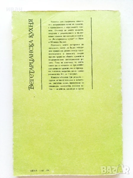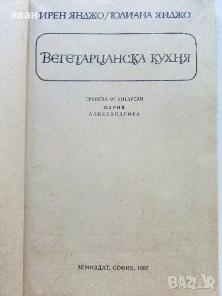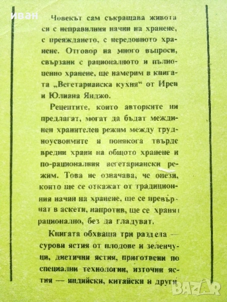 Вегетарианска кухня  - Ирен Янджо,Юлиана Янджо - 1987г. → Обява 50725571