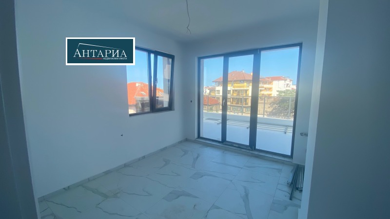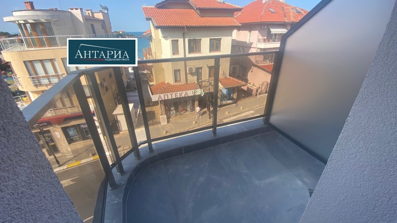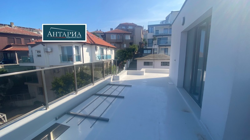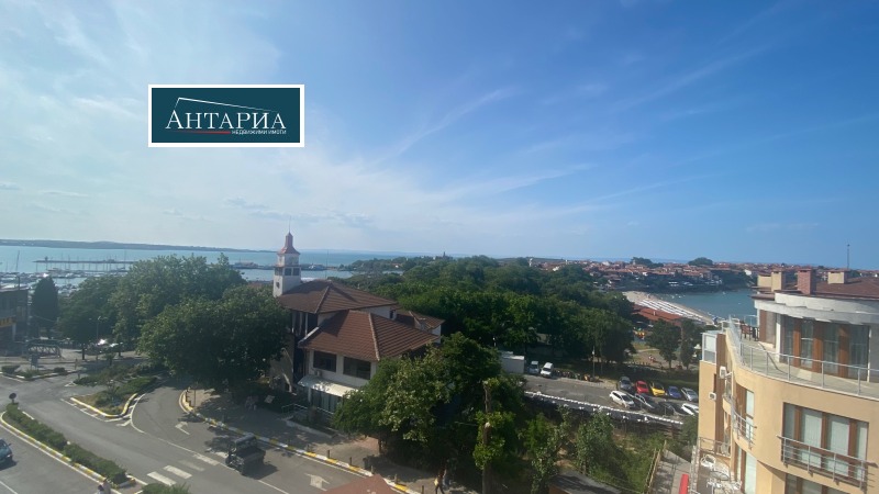 Мезонет с панорамен изглед към морето и Стария град. Сградата е въведена в експлоатация 2024г., на минути пешеходно разстояние до централния плаж и центъра на Стария град. Жилището е на две нива и разпределнието по етажи е следното: първи етаж: дневна с трапезария и кухненски бокс, баня с тоалетна и балкон пред дневната; вътрешно стълбище води към втори етаж с две самостоятелни спални, баня с тоалетна, тераса пред една от спалните и в допълнение панорамна тераса, извън посочената обща квадратура. Степен на завършеност: положени подови настилки, стени- шпакловани и боядисани, бани- завършени.