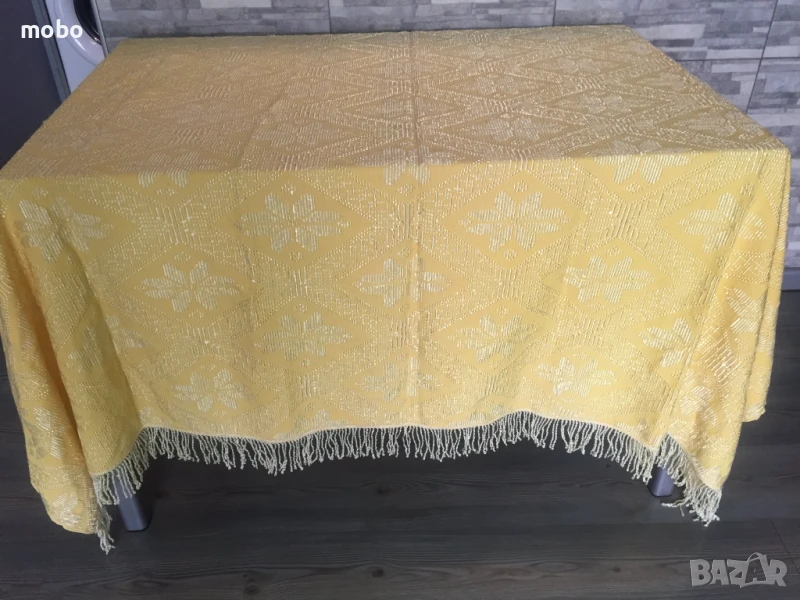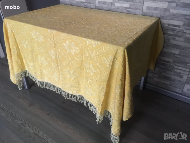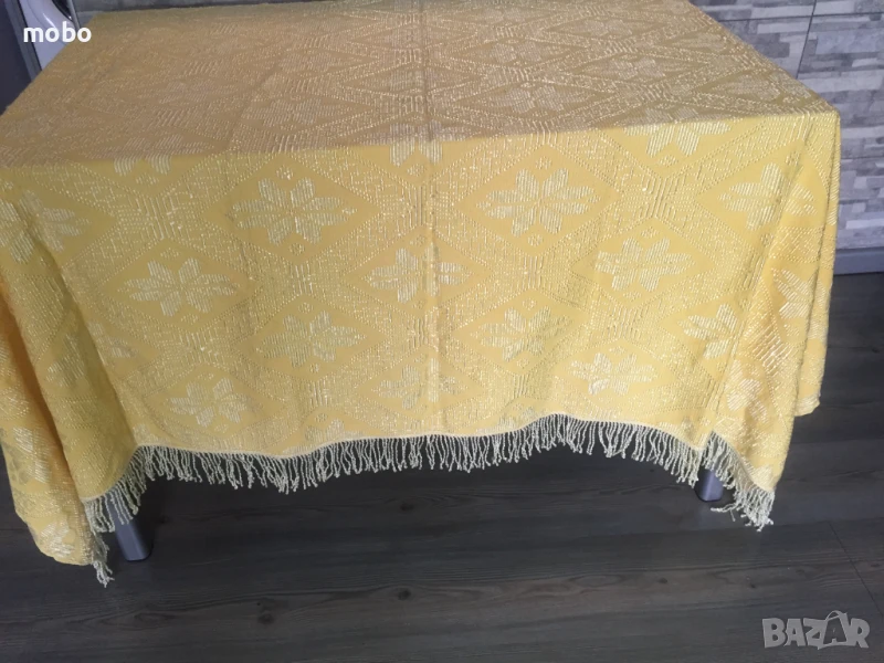 комбинация от шарки и цветове- жълто и бяло. Лека и приятна материя.