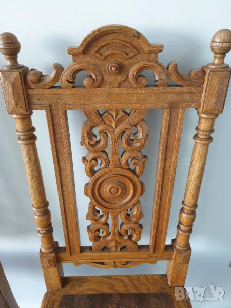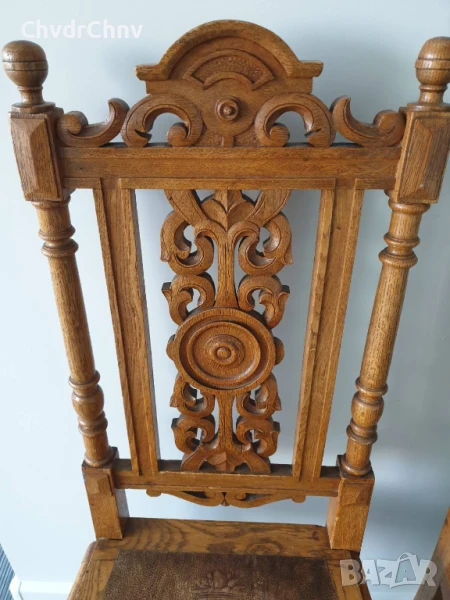 чифт2бр 100см дърворезба/стари ретро дървени столове с релефни седалки