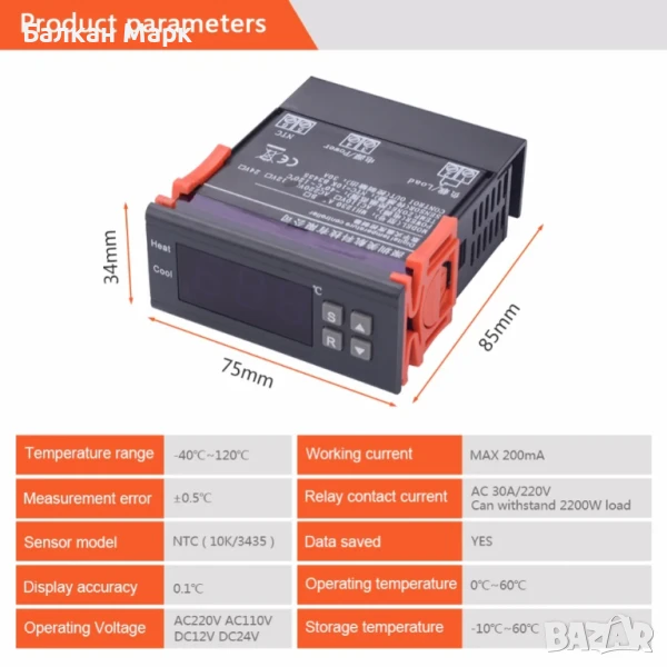 Продавам надежден и мощен температурен контролер MH1230A, подходящ за автоматично управление на отоплителни и охлаждащи системи. Идеален за инкубатори, хладилници, фризери, бойлери, аквариуми, оранжерии и различни DIY проекти.