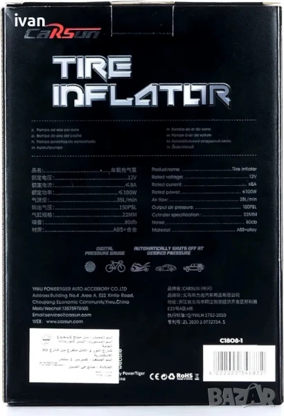 Предназначен основно за напомпване на автомобилни и велосипедни гуми.