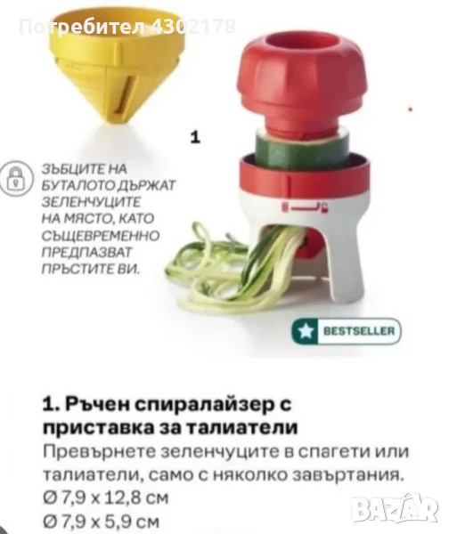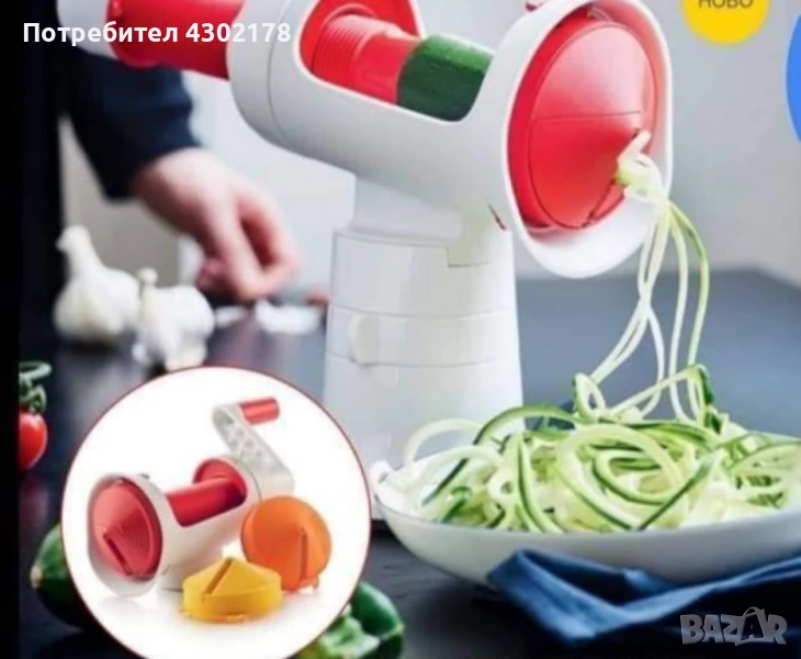 Спиралайзер на вакумна основа горна част с две приставки само за
