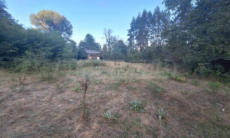 Теренът е равен и има изградена малка постройка.
