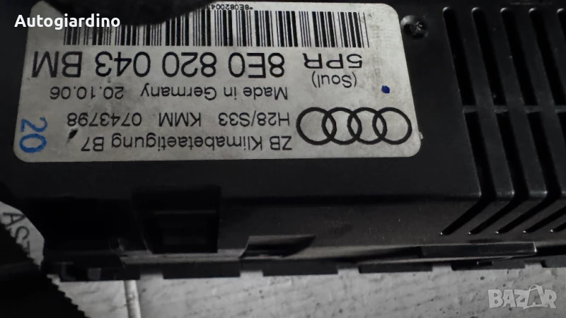 Климатичен блок / панел / табло зa Audi A4 - 8E0820043BM