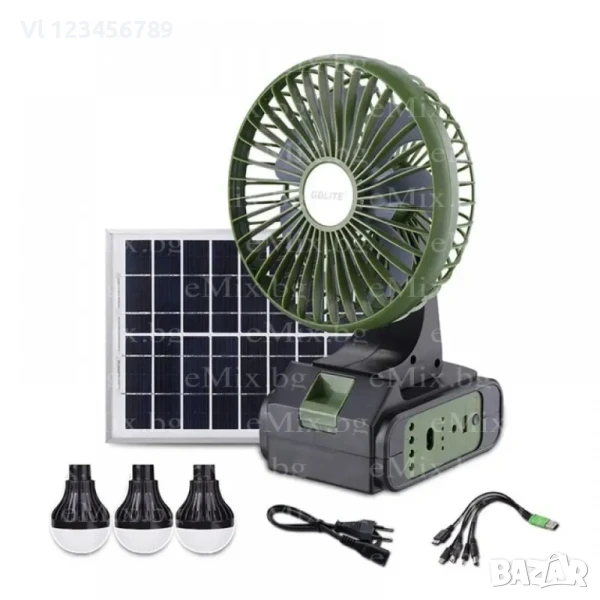 GDLITE 8081 - Соларна Осветителна Система с Вентилатор и 3 Крушки