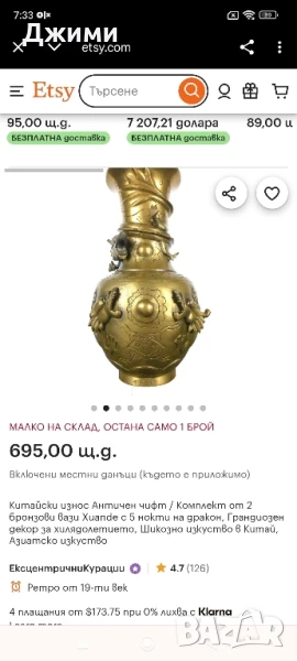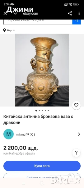 много стара азиатска ваза → Обява 50729752