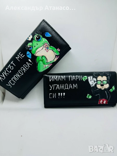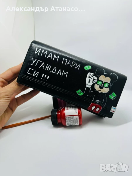 Ръчно рисуване по ваш избор на дамско и мъжко портмоне от естествена кожа