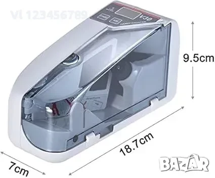 Използва се за броене на валута. Удобен, лек и преносим е. Работи с батерия или адаптер (батерията не е включена, адаптерът е включен).