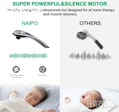 Мега производителност. Насладете се на мощен масаж с усъвършенстван DC мотор с 3600 об/мин, който работи тихо и прониква до 8 мм под кожата! Този актуализиран модел на ръчен масажор MEGAWISE разполага с подобрена технология за намаляване на шума за по-тихо изживяване от повечето си конкуренти. Ергономично проектираната дръжка перфектно се приспособява към физиологичната извивка на човешкия гръбнак за лесен и удобен захват.