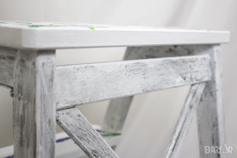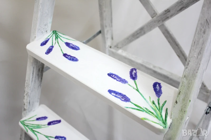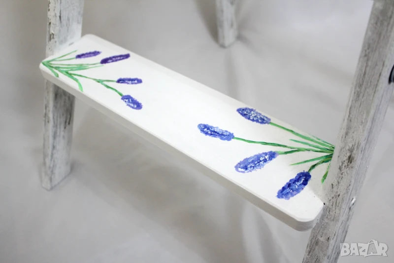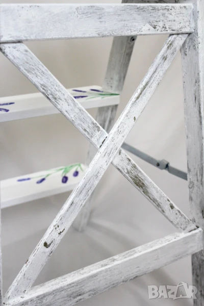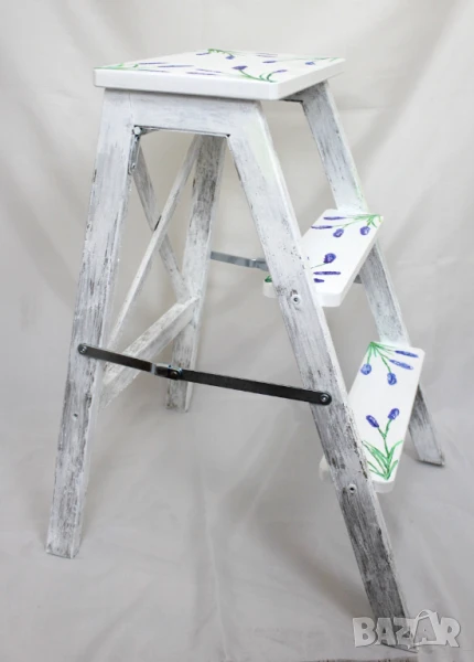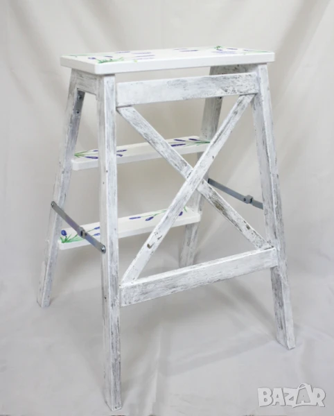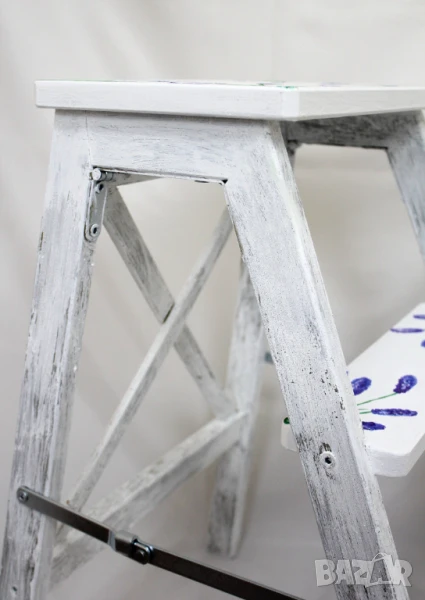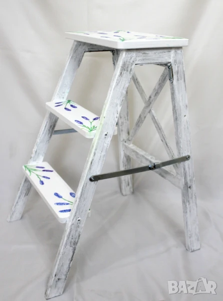 Модерна стълба с 3 стъпала в бял цвят с фин декоративен мотив върху стъпалата.