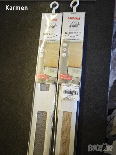 Продавам 2 бр. нови щори тип плисе на Гардиния, в сиво и бежово. Цена 30 лв. бр.