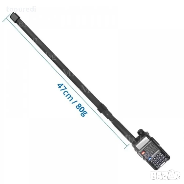 Антената е дълга почти 47 см. Тя е гъвкава и може да засили значително сигнала на Вашата радиостанция. Разширете обхвата на вашата комуникация.