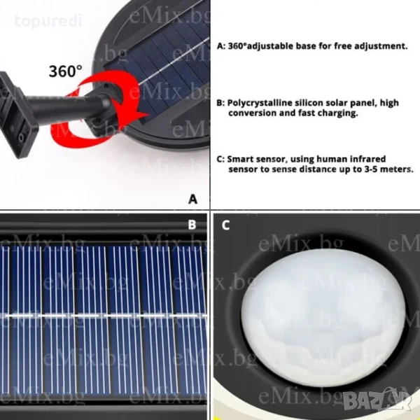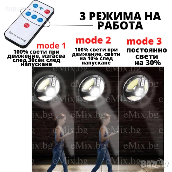 Соларна лампа със сензор и дистанционно управление LB-1288A → Обява 50733526
