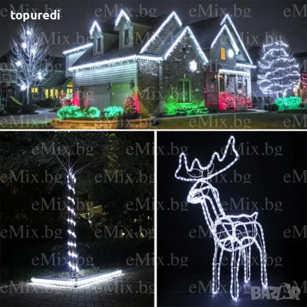 • Двупроведен с бели лампи. Особено подходящ за коледна украса на вашия дом, заведение, магазин или за светлинни реклами.