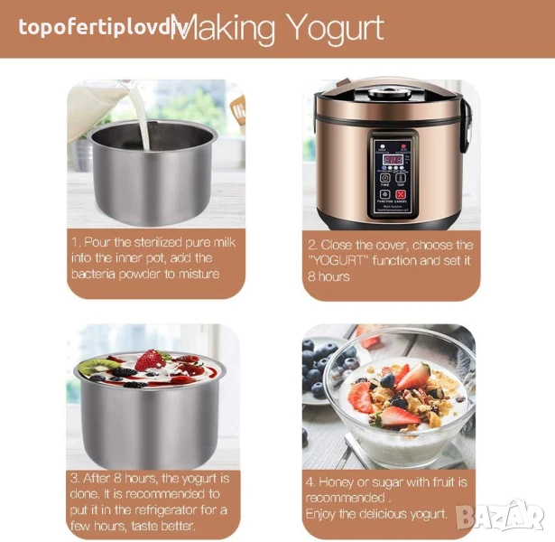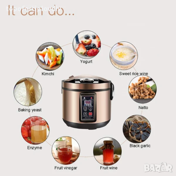 Интелигентна постоянна температура с вътрешен съд от неръждаема стомана - може да прави кисело мляко, плодово вино, кимчи, сладко оризово вино, черен чесън, плодов оцет, ензими, хлебна мая, нато.