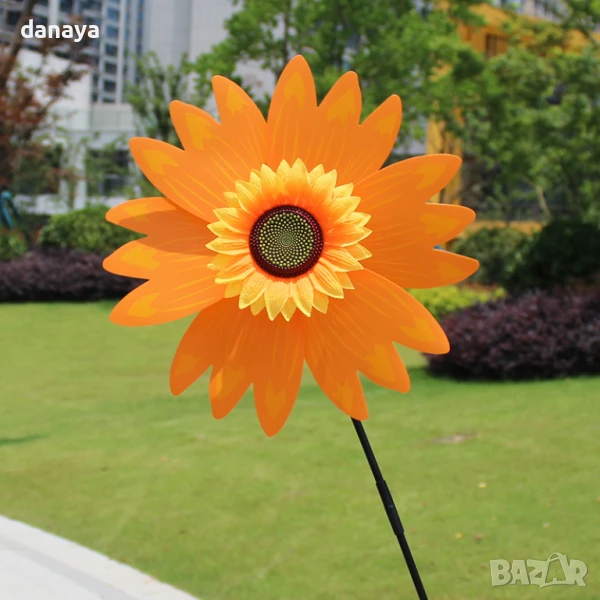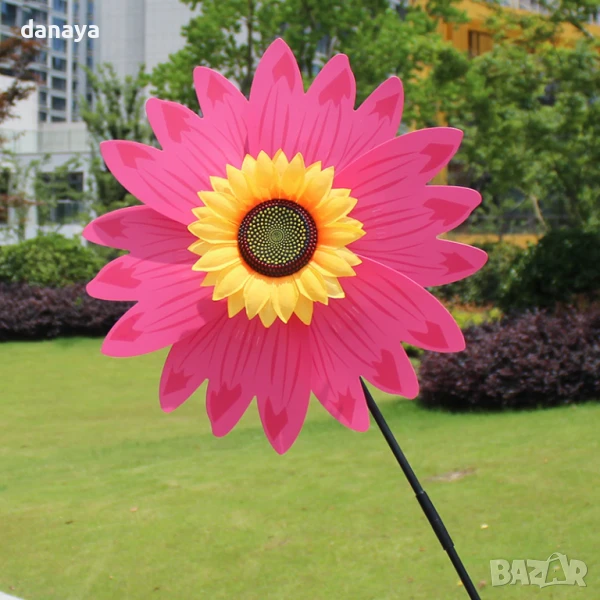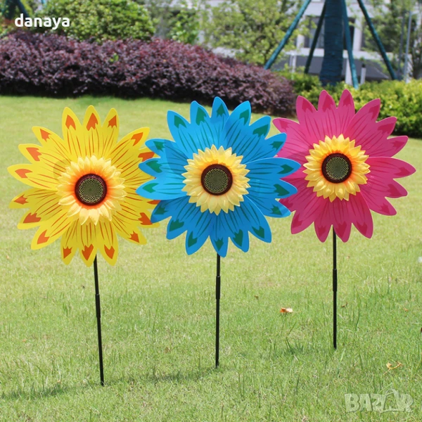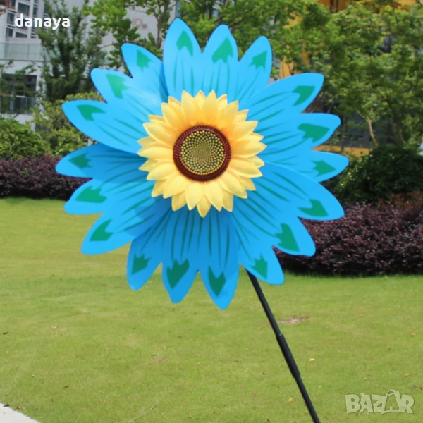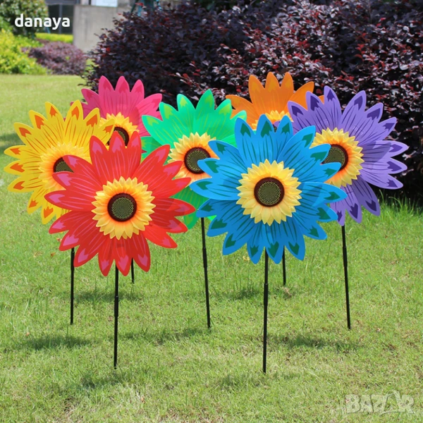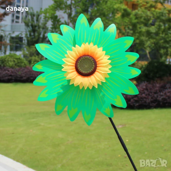 Подарете живот и настроение на вашето външно пространство с тази красива градинска въртележка във формата на голямо цвете със слънчоглед. Със своя цветен дизайн и енергично въртене при най-лекия вятър, тя е идеалната вятърна въртележка за градина, която ще привлече погледите и ще внесе радост в двора, терасата или балкона ви.
