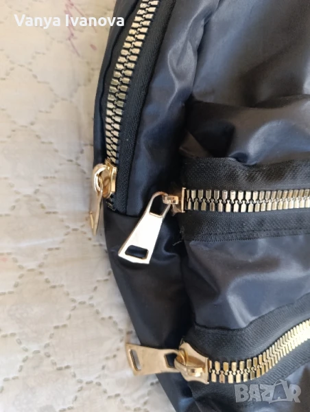 Раница на турската марка Defacto.Раницата е от шушляк и златисти ципове .Няма скъсано, циповете са променили цвета си, и на дъното има една черта , като надраскано , показано на 9 снимка, има едно отделение и малко джобче .