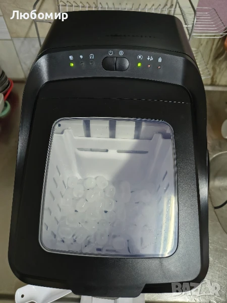 Ледени кубчета с избор от два размера: малък (Ø 11 mm) и голям (Ø 27 mm)Произвежда 9 кубчета лед на цикъл (7 до 15 минути) и до 15 кг/ден (до 75 кубчета лед/час)Управление с превключвател за включване/изключване, избор на размер и LED индикатори за резервоар за вода и контейнери за кубчета лед