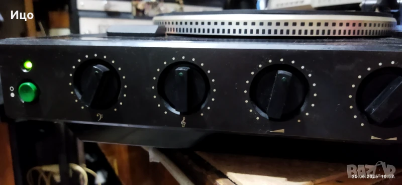 Универсум грамофон с вграден усилвател 15 вата.За възстановяване или резервни части.Липсва тежестта.Всичко друго е налице.Грсмофона включва,и се опитва да върти.Наличен здрав и чист капак,едната панта е счупена.При интерес пишете.