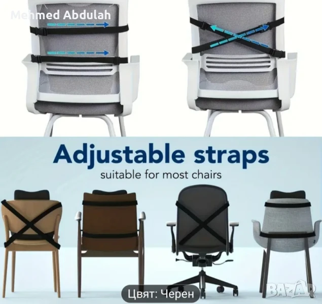 Ергономична Възглавница за Поддръжка на Кръста, Подходяща за Офис, Игри и Автомобилни Седалки - Регулируема с Двойна Презрамка, Дишащ 3D Мрежест Калъф, Контуристичен Облегало, Черно със Сини Акценти, Ергономичен Дизайн | Удобство