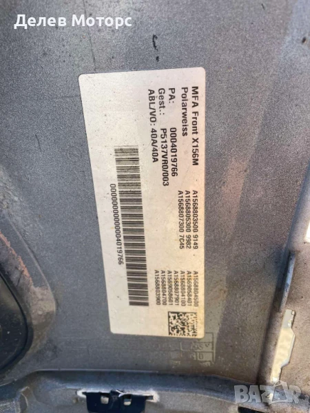 Предна броня за Mercedes GLA 180 X156, A1568803500, двигател 270910, автоматик, 122 кс.., 60 000 km., 2020, euro 6D, Мерцедес ГЛА 180 ЦДИ, automatic, engine 270910, 122 ph., 60 х.км., 2020г., евро 6Д в автоморга Delev Motors, между с. Каменар и с.Куманово гр. Варна. ВСИЧКИ ЦЕНИ СА С ВКЛЮЧЕНО ДДС. ВСИЧКИ ЧАСТИ СА С 14 ДНИ ПРАВО НА ВРЪЩАНЕ. Изпращане на части чрез наложен платеж с ЕКОНТ с 30% отстъпка от куриерските услуги за цялата страна, получаване на следващият ден. Доставката и връщането е за сметка на КУПУВАЧА. Изкупуване на западни и японски автомобили, джипове и бусове след 2020 г. за части. Издаване на удостоверение за бракуване пред КАТ. Издаване на всички необходими документи за регистърация на двигател в КАТ. РАБОТНО ВРЕМЕ ОТ ПОНЕДЕЛНИК ДО ПЕТЪК от 9.00 ч. до 18.00 ч., ПОЧИВНИ ДНИ СЪБОТА И НЕДЕЛЯ. За контакти: 0897852371