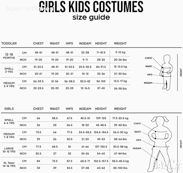 - Предлага се в размер прохождящ за деца 7-8г; моля, вижте таблицата с размери за повече подробности.