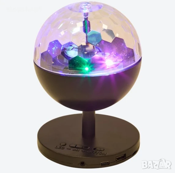 Нека купонът започне, защото диско светлините се завръщат! Направете партитата си незабравими с този високоговорител с диско светлини. Свържете го с телефона си чрез Bluetooth и пуснете любимите си хитове. С дистанционното управление можете да контролирате не само музиката, но и светлините! Високоговорителят има време за възпроизвеждане от приблизително 3,5 часа, а когато батерията е празна, се зарежда напълно за 5,5 часа. Спецификации Размери (вкл. опаковката) (дxшxв) 11,5 x 11,5 x 16 см Bluetooth Да Безжична Да Честотен диапазон 2480 Hz Тип връзка USB Мощност на канал 6 вата