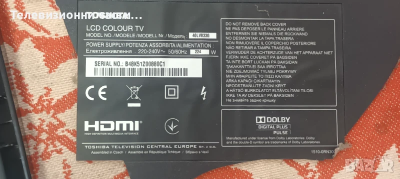 Toshiba 40LV833G на части.Целият телевизор си е работещ, продава се на части поради липса на заден капак