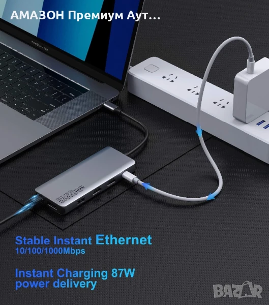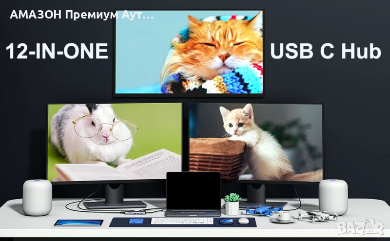 - 12 В ЕДНО: USB C докинг станция, USB C двоен HDMI адаптер за лаптопи с операционна система Windows. Преобразувайте вашия USB C порт в 12 порта: 2x4K 60Hz HDMI, 1xDP дисплей, 2USB 3.0 и 2USB 2.0, 100W захранване, Gigabit Ethernet 1000mb/s, SD/TF, 3.5mm аудио жак.