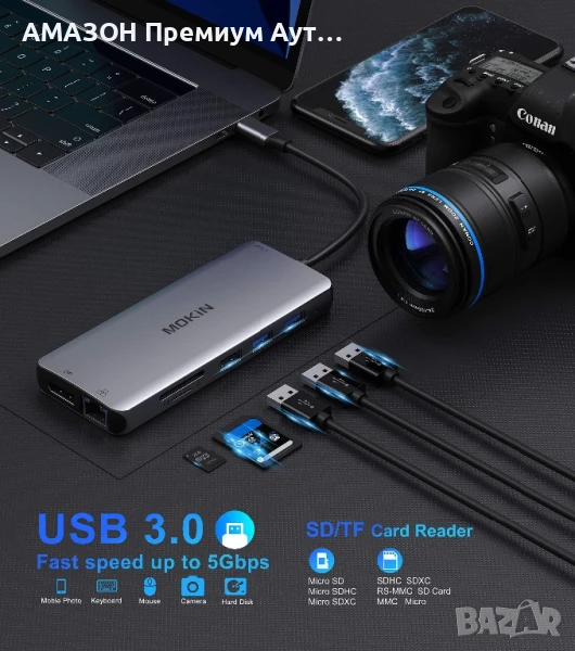 - Супер бърза скорост на данни (USB портове/3.0 SD/TF/Gigabit Ethernet 1000mb/s): С 2x USB 3.0 порта с 900mA изход, осигуряващи незабавна синхронизация и прехвърляне на файлове със скорост от 5Gbps и 480Mbps, лесно свързване на смартфони, таблети, твърди дискове за безпроблемен трансфер на данни с USB-C порт. 2 допълнителни USB 2.0 порта ви позволяват да свържете клавиатура или мишка без никакво забавяне.