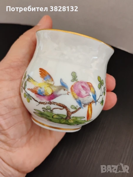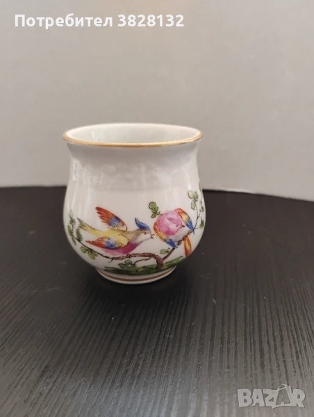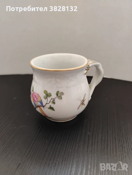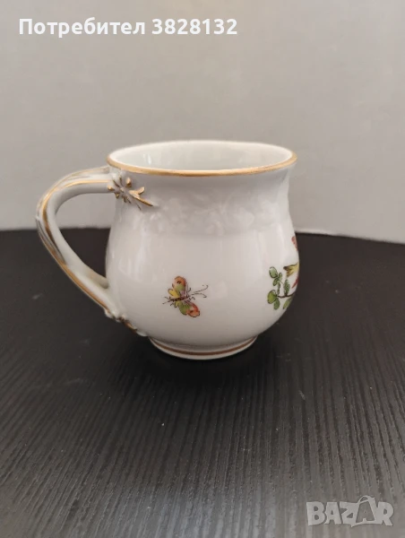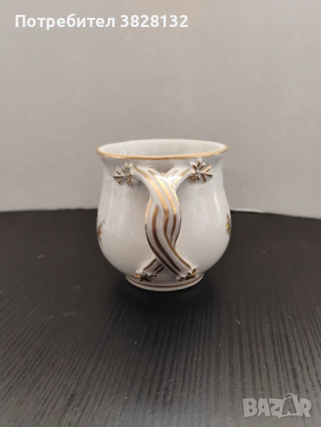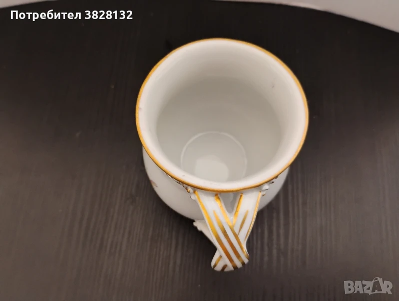 чаша за кафе сн.7-12, от фабрика за порцелан "Дрезден",височина 6см, диаметър -от ръб до ръб 5,5см, маркирана, порцелан, ръчно рисувана с позлата, без забележки и без следи от употреба. цена 30лв.