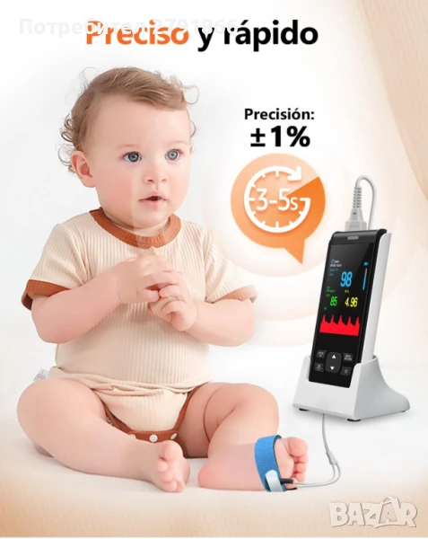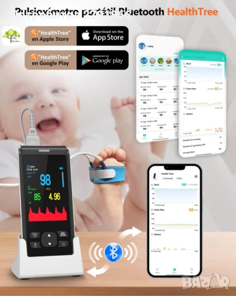 Пулсов оксиметър HealthTree кислороден монитор за възрастни и отделна сонда за бебе акумулаторен