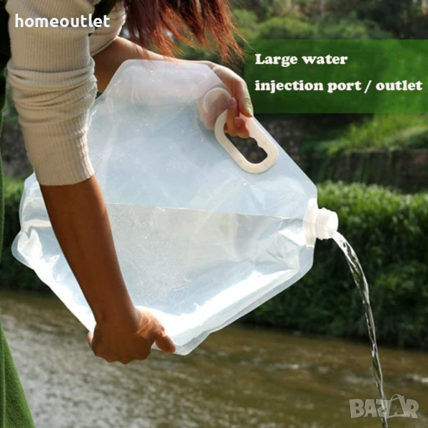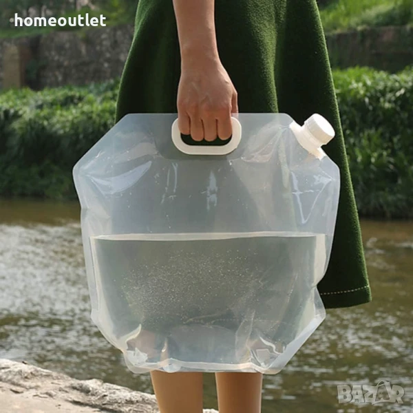 Сгъваем, удобен, издръжлив, многократно използваем и пестящ място контейнер за вода, изработен от прозрачен PC полимер.