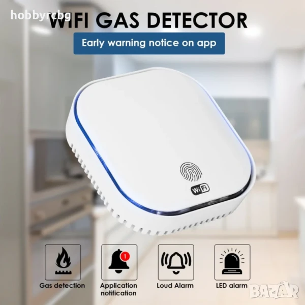 WiFi смарт газ детектор за запалими газове с контрол през мобилно приложение