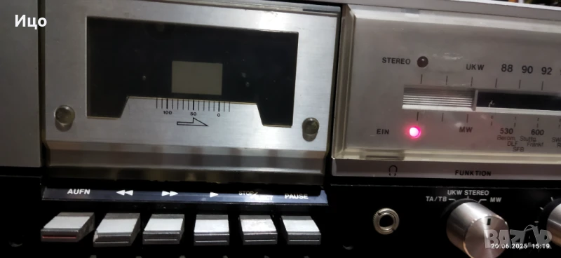 Системата е неработеща.На изхода няма сигнал,или се чува нещо тихо.Тунер работи,скала мести със светла точка.Касета превърта,но при плей се чува шум в механиката.Грамофон завърта липсва доза и игла.Добър външен вид,наличен капак но е пукнат по средата.Предлага се като НЕРАБОТЕЩА.При интерес,пишете.