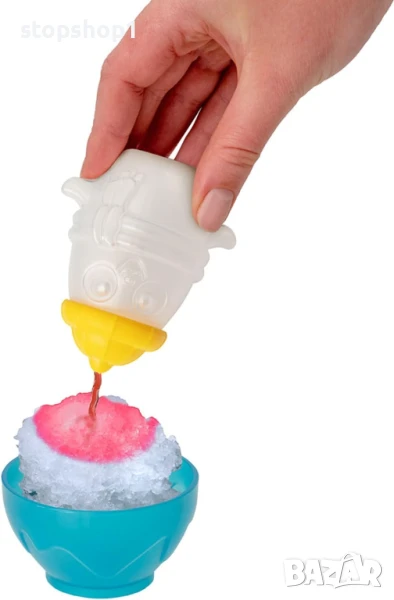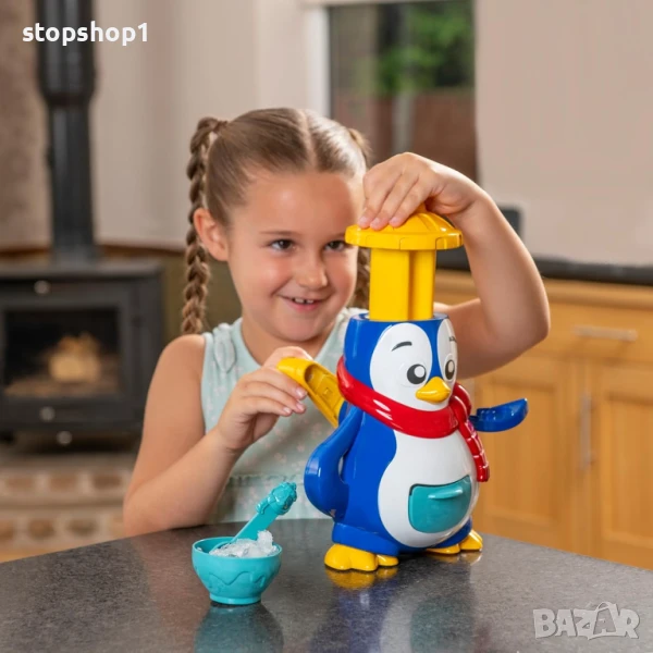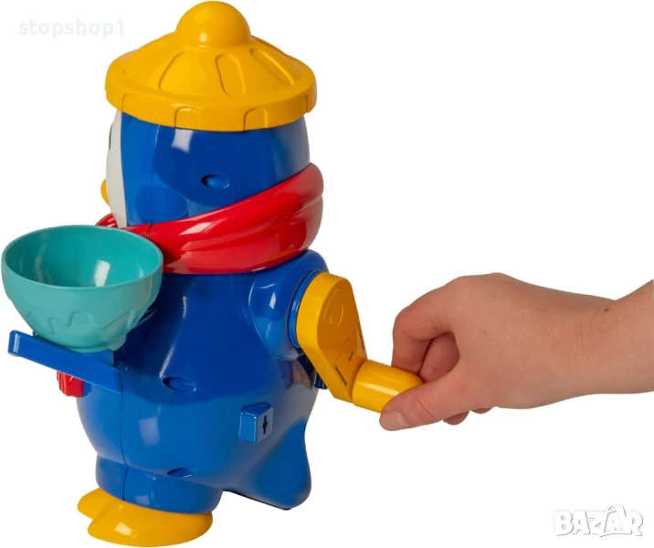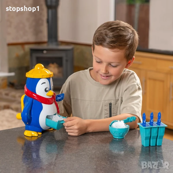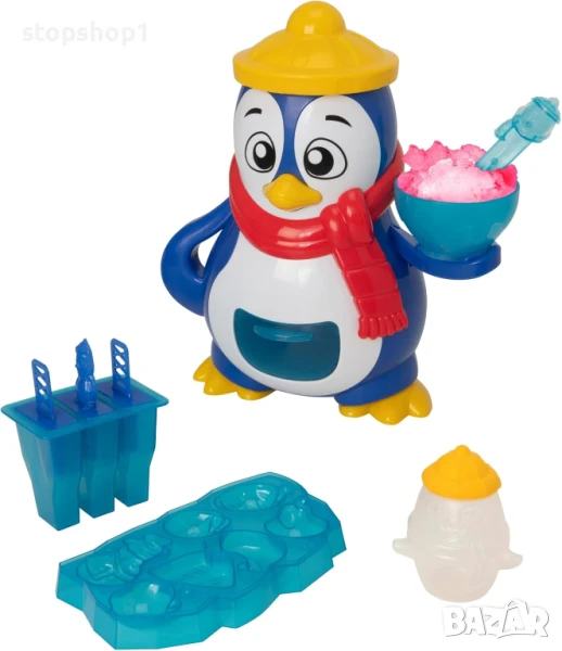 Открийте всички основни компоненти, включително купа, форма за лед, лъжица, бутилка за сок и дори формички за сладолед на клечка, за да приготвите вашите вкусни ледени лакомства! Процесът е лесен: поставете малко лед в горната част на пингвина, точно под шапката му, и след това завъртете дръжката отзад, за да смачкате леда. Този натрошен лед се поставя в чекмеджето в корема му. След това можете лесно да го прехвърлите в предоставената чиния и да използвате удобната бутилка за пингвин, за да влеете любимия си ароматизиран сок или ликьор. Като алтернатива, добавете го във формичките за сладолед на клечка и го върнете обратно във фризера. Идеално време за игра, за да се разхладите в горещ ден!