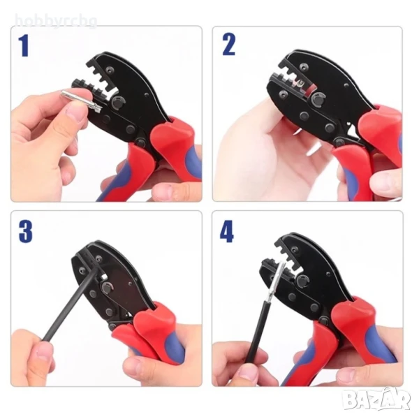 Три обхвата на кримповане: 2.5 мм, 4 мм и 6 мм.