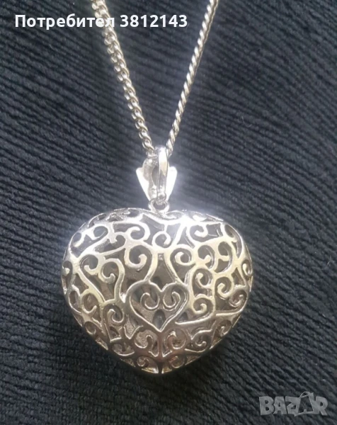, снимка 2 - Колиета, медальони, синджири - 50738427 Сръбърен синджир със сърце
