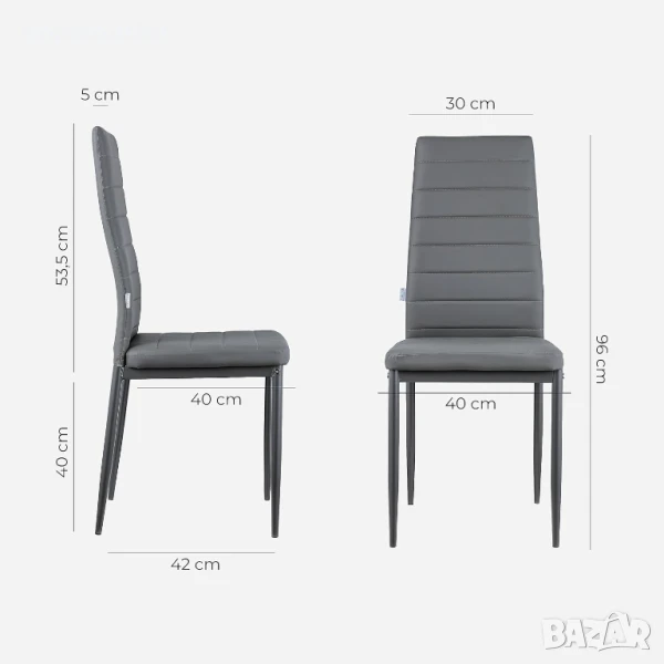 Височина 96 см; Ширина на седалката 42 см; Дълбочина на седалката 43 см