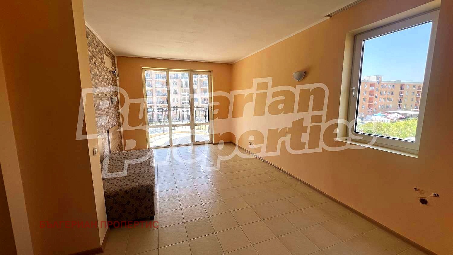 Студиото е разположено на трети етаж и се отличава с южно изложение, което осигурява изобилие от естествена светлина през целия ден. Апартаментът е завършен "до ключ", което позволява на новите собственици незабавно да започнат с обзавеждането според своя вкус и нужди. Голямата тераса добавя допълнителен комфорт и е идеално място за сутрешно кафе или вечерна почивка с гледка към басейна и околния пейзаж.