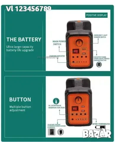 Dat AT-9011B е надежден комплект за слънчево осветление, който има 3 светодиодни крушки с ниска консумация и USB многоадаптерен кабел, който ви позволява да зареждате телефоните си от вътрешна 4V 9000OMah акумулаторна оловно-киселинна батерия. Батерията се зарежда от слънцето чрез малък 3-7w соларен панел, предоставен с комплекта. Този панел може да се постави на покрив, извън прозорец или навсякъде, където ще получи достатъчно светлина. Можете също да зареждате батерията през нормален електрически контакт (110-240v, 50/60hz). Устройството има индикатори за зареждане и състояние, за да ви покаже колко заряд остава и с каква скорост се зарежда. Пластмасовите (нечупливи) светодиодни лампи могат да бъдат свързани едновременно, осигурявайки достатъчно светлина за до три стаи. Всяка светлина може да се включва и изключва индивидуално. Основни характеристики: 3 x 3w led крушки 3.3W соларен панел и AC акумулаторен.