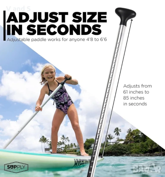 НАСТРОЙТЕ РАЗМЕРА ЗА СЕКУНДИ: Кажете сбогом на досадата с определянето на размера на греблото и приветствайте приключенията с регулируемото гребло за SUP Adventurer! Само с едно щракване това гребло може да се персонализира от 61 инча до 81 инча - идеално за цялото семейство, независимо дали сте едър гигант или малко дете. С тегло от само 1,1 кг, дори децата могат да се справят с него с лекота! Освен това, той е чудесен заместител на греблото за SUP. Пригответе се да гребете по пътя си към забавлението за нула време!