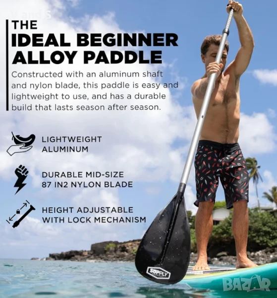 ГРЕБЛО ЗА НАЧАЛНИ УСЛОВИЯ: Пригответе се да покорите вълните с нашето първокласно гребло за начални нужди - то е леко, издръжливо и супер лесно за употреба! С дръжка от морски алуминий и найлоново острие, нашите регулируеми гребла за падълборд ще ви отведат на места, без да ви тежат. Пригответе се да гребете стилно и да се плискате с това страхотно гребло за SUP.