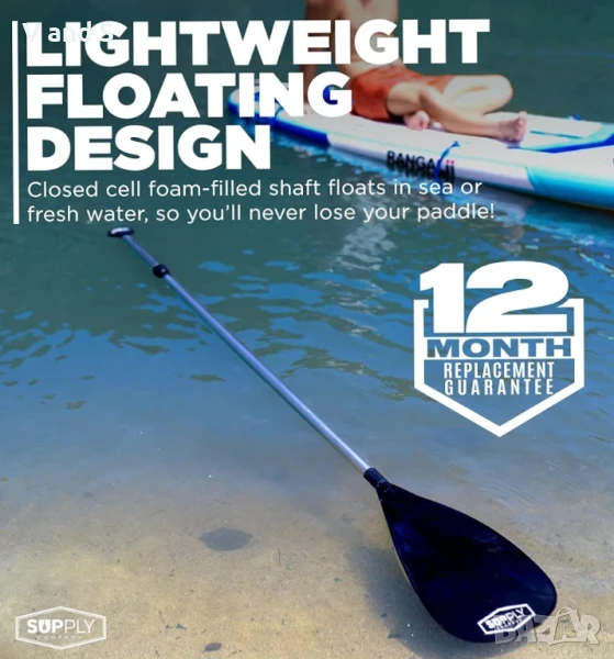 гребло за падъл борд - алуминиево плаващо, леко и издръжливо за пътуване